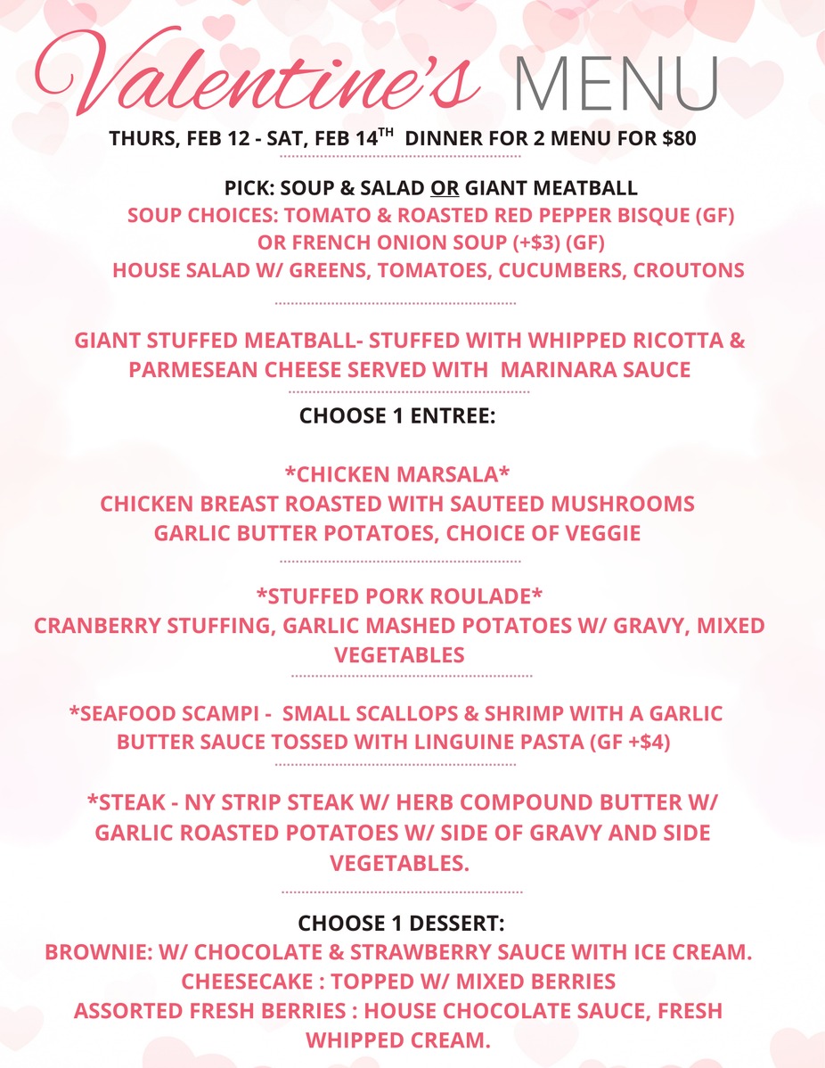 Available Thurs, Feb 12 - Sat, Feb 14. Reservations online!